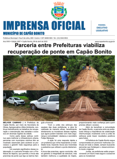 Aqui você encontra o conteúdo completo e os destaques desta edição da Imprensa Oficial do Município de Capão Bonito. Para visualizar o documento na íntegra, utilize o botão de download abaixo.